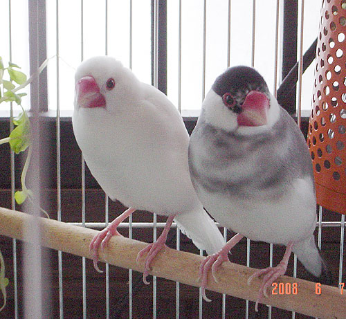 桜文鳥ココと白文鳥モナの成長記
