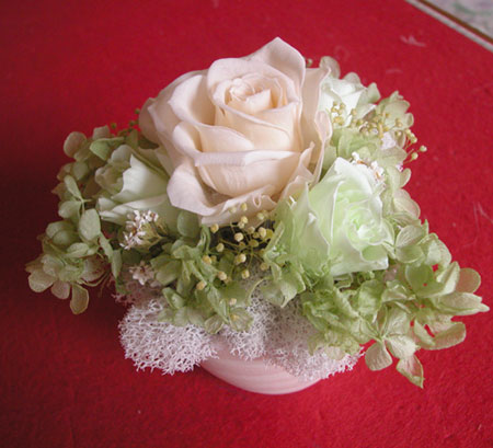 アジサイ(黄緑色の花)は見本より、かなり細かく花房を分けて
