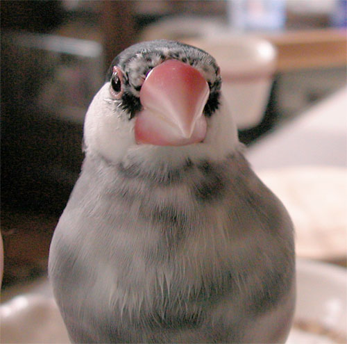 やっぱりお顔が……でも実際の文鳥さんも正面からみると