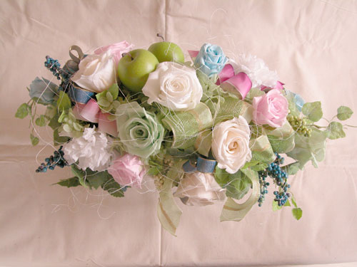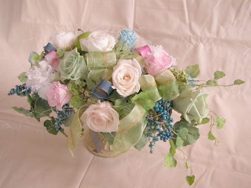 アレンジもこのリボンと馴染む色使いにしてみました。