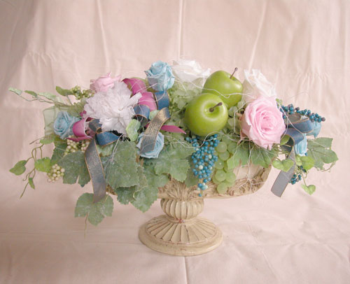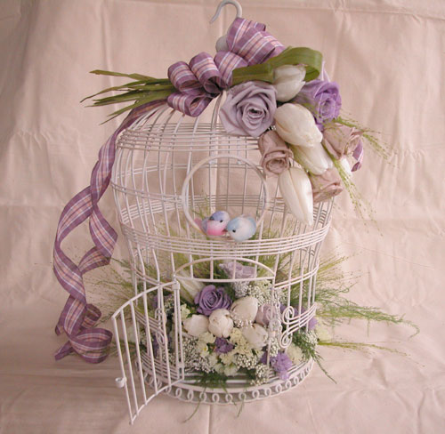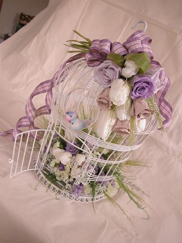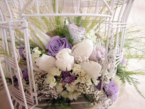 「花時間・プリザ」に掲載されていた「鳥かごのアレンジ」を基礎に、