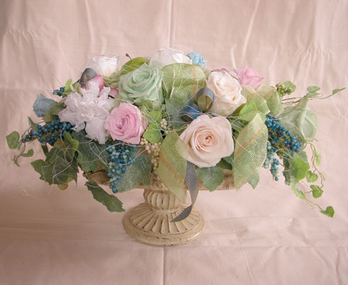 色使いや使用する花材を変えてみたり・小鳥のモチーフを使用したりして