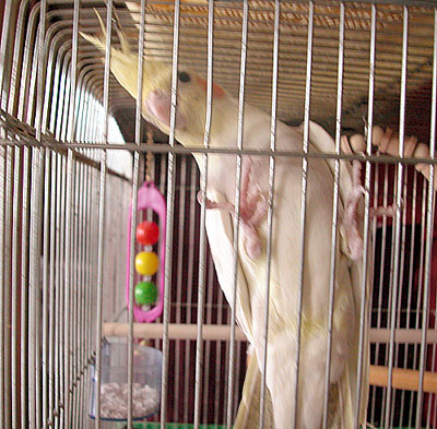 我が家の新入り、臆病で名高いオカメインコのウィちゃん。