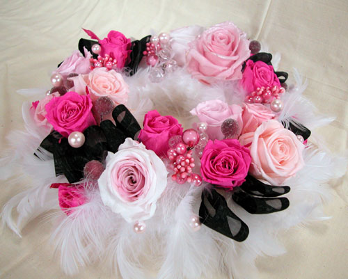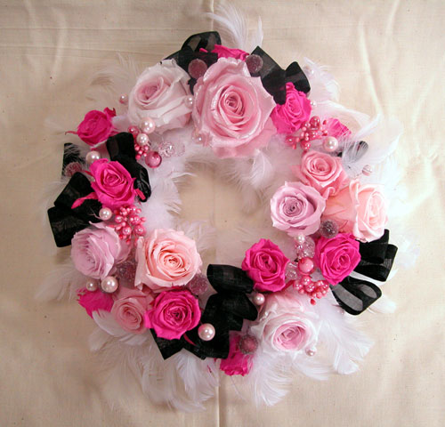 今日のプリザーブドフラワー作品はリースです。